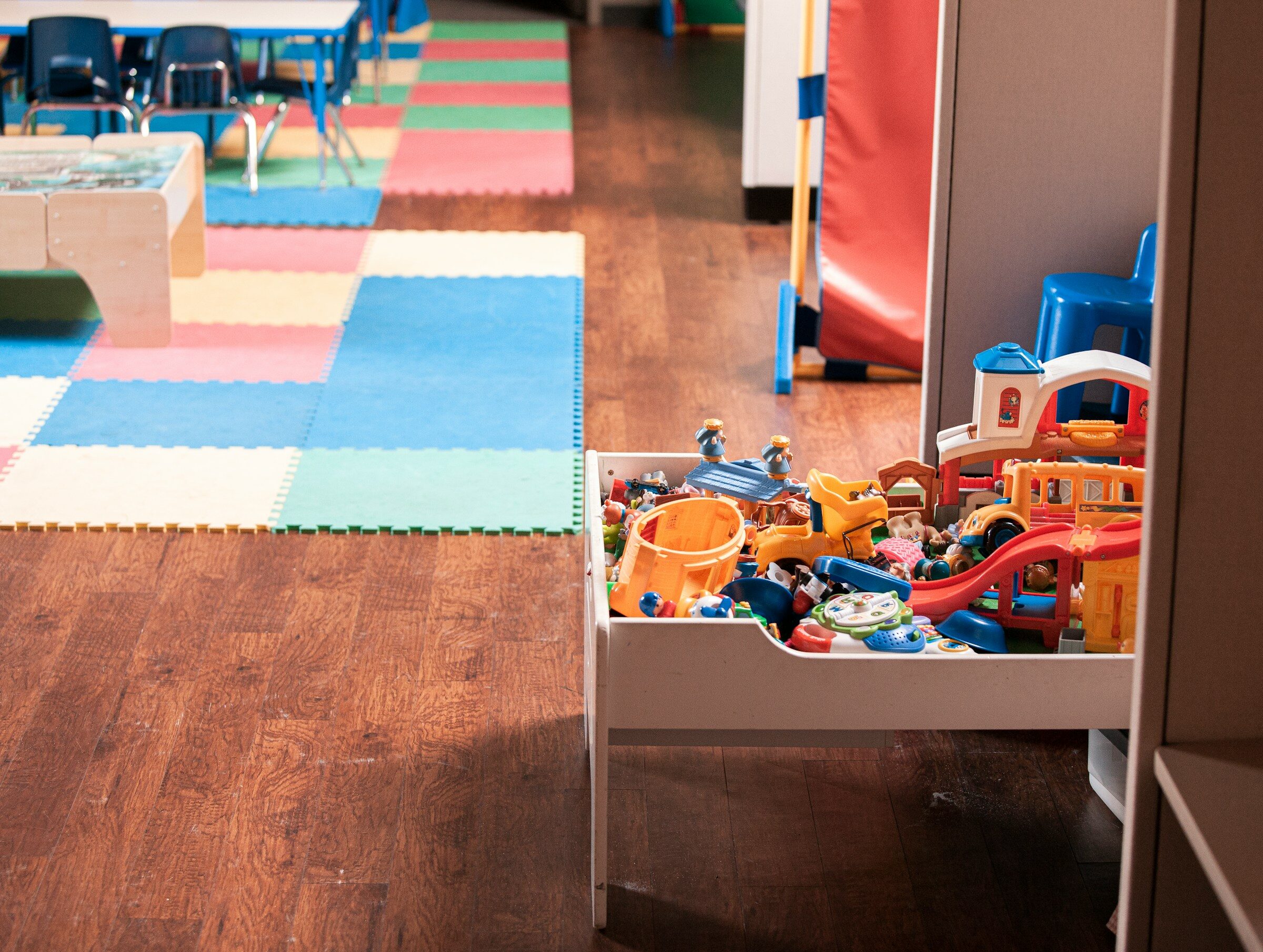 Step into our clean, modern facility designed with bright, calming colors to create a welcoming space for children and families to explore and learn.